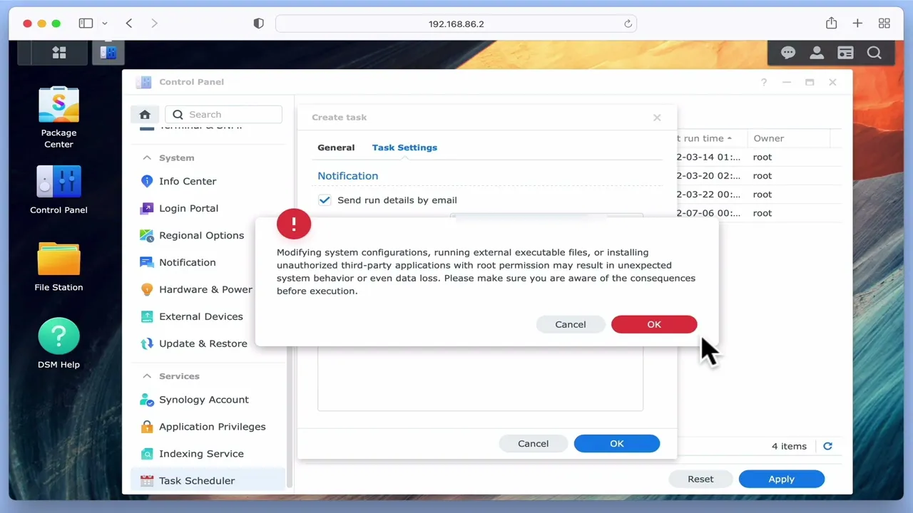 - From within the DSM choose Control Panel – Services – Task Scheduler